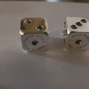 Roll in style with our .999 Silver Dice Set, crafted from pure silver for a luxurious gaming experience. Each set includes a pair of meticulously crafted dice, featuring a high level of detail and craftsmanship. Whether you’re a serious gamer or a collector of unique items, this silver dice set is sure to impress. Add a touch of elegance to your game night with our .999 Silver Dice Set. Shop now and elevate your gaming experience with these exquisite silver dice
