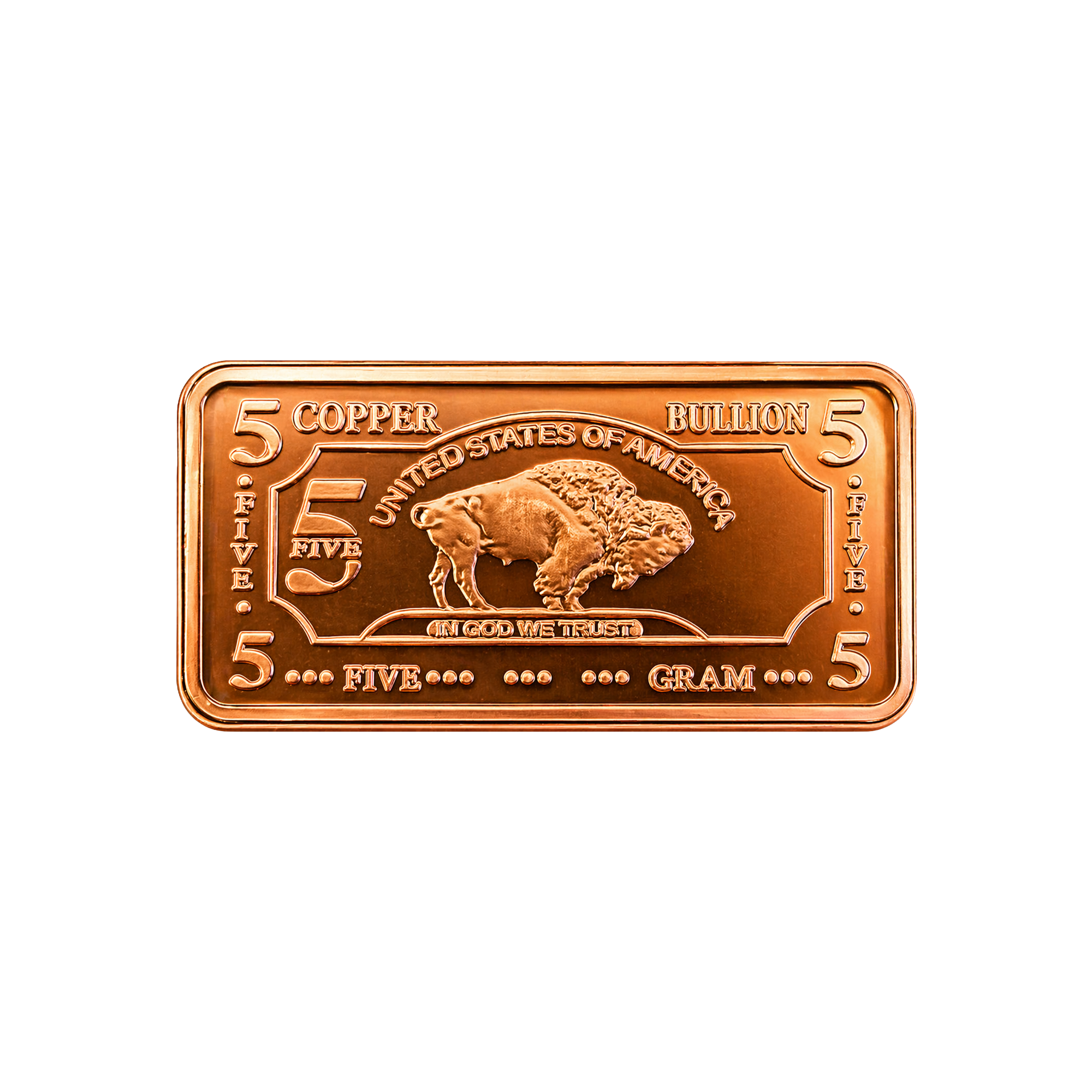 Add a classic touch to your collection with this 5 gram Buffalo Bar, beautifully crafted from .999 fine copper. Featuring a timeless buffalo design, this compact piece offers both rustic charm and collectible appeal. Each bar comes protected in a clear capsule, making it perfect for display, gifting, or preserving its finish for years to come.