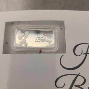 Make birthdays truly special with our HAPPY BIRTHDAY .999 Fine Silver Bar and birthday card combo. This exquisite silver bar is crafted from the finest .999 silver, featuring a beautiful design that celebrates the occasion in style. Paired with a heartfelt birthday card, this gift is sure to bring joy and smiles to your loved one’s special day. Whether you’re looking for a unique gift or a memorable addition to your collection, our HAPPY BIRTHDAY .999 Fine Silver Bar and birthday card combo is the perfect choice. Shop now and make their birthday unforgettable with this thoughtful and elegant gift set.