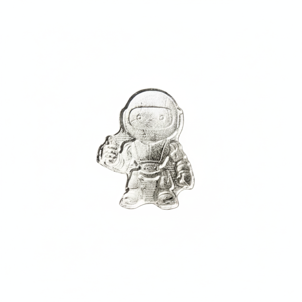 Step into the future with this 1 gram .999 fine silver Robot bar — a sleek collectible that combines modern design with the timeless value of silver. Expertly crafted from pure .999 fine silver, this miniature robot features intricate details, capturing the essence of technology and innovation in a compact, shining form.
